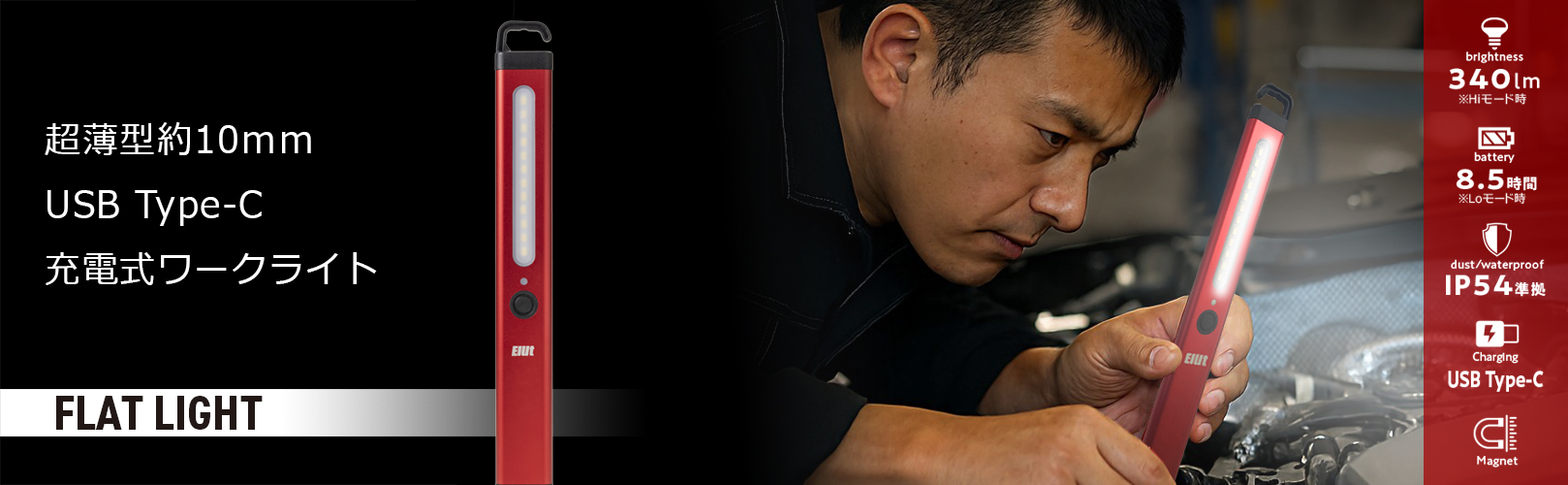 車の狭いエンジンルームの狭い場所に差し込み、奥までしっかり照らせます。持ち運びをするシーンにも最適。